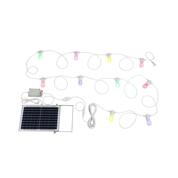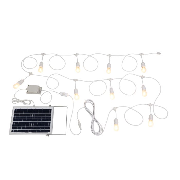Product description Create a beautiful atmosphere in your outdoor living with the addition of a SOLAR FESTOON LIGHT KIT. Featuring a quality commercial grade solar panel, these festoons will last up to 8 hours on a full charge, allowing you to party well into the night! With their IP65 weatherproof...